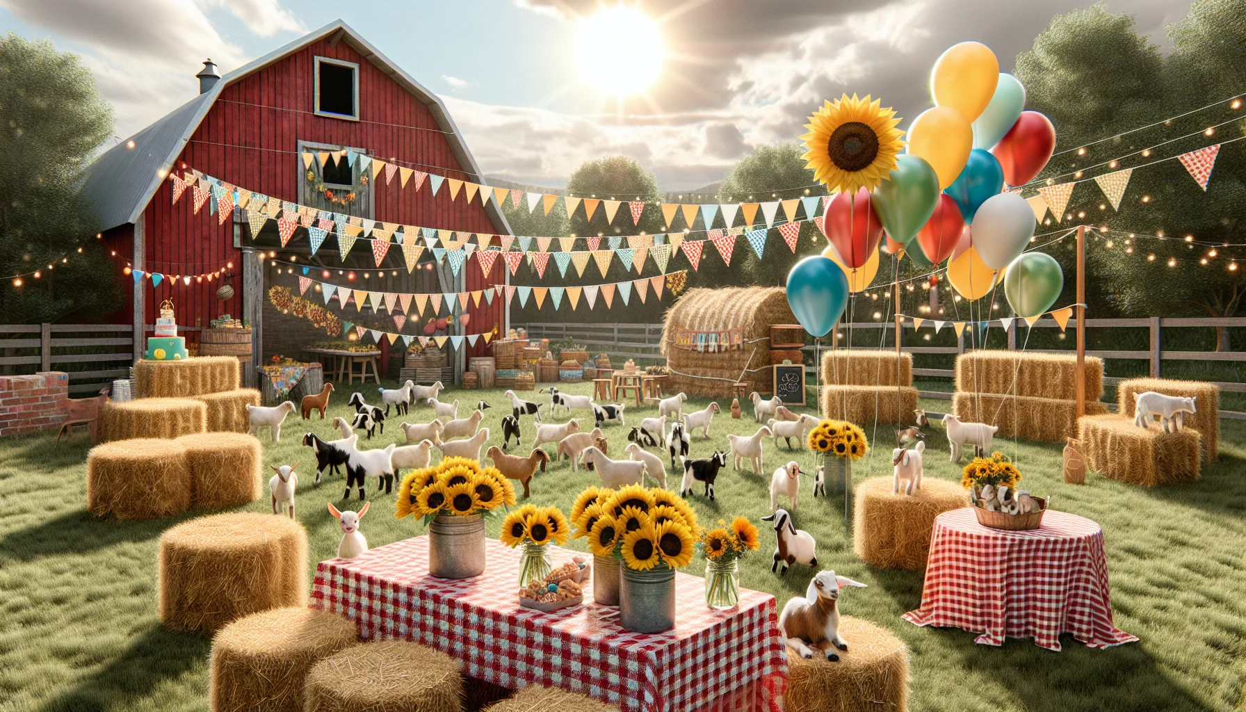 - Farm animal cutouts or stuffed animals placed around the party area